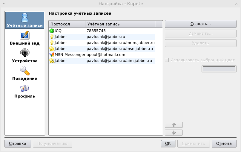 | current | 21:45, 2 January 2007 | 807 × 508 (56 KB) | Leksey (Talk | contribs) | Настройки аккаунтов в различные IMs |