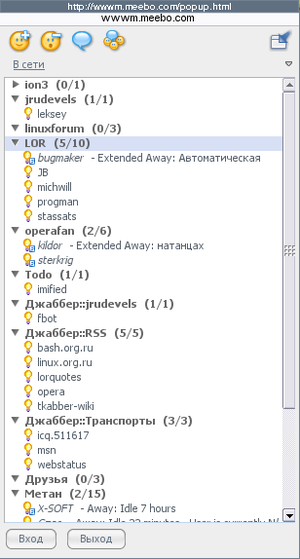 Нажатие одной кнопки, и Meebo ростер становится отдельным браузерным окном, и с ним можно делать все, что позволяет ваш браузер и менеджер окон