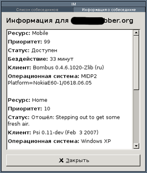 В силу своей многопротокольной направленности поддержка XMPP не такая полная, как в монопротокольных клиентах.