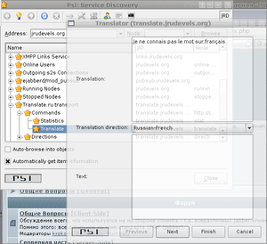 - В клиенте желательна поддержка Ad-hoc commands, тогда не обязательно добавлять в ростер каждый отдельный переводчик между двумя языками. В данный момент таковых немного.