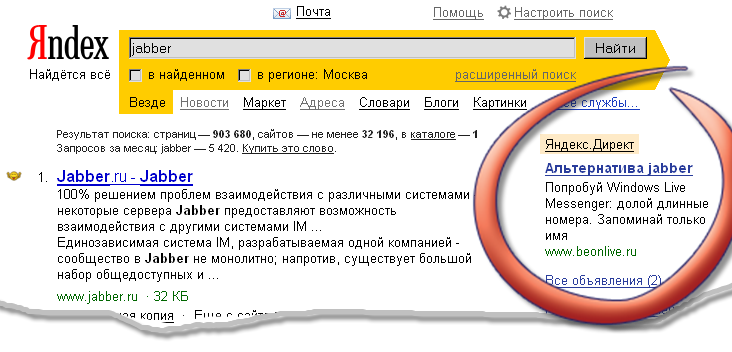 Контекстная рэклама на службе Microsoft MSN messenger