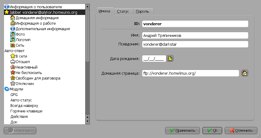 | 16:45, 13 March 2007 | Gaim 4 accounts.png (file) | 28 KB | Leksey | Gaim - аккаунты Автор скриншота: Андрей Тряпичников (vonderer) | 1 | |